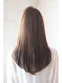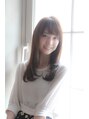 髪を伸ばしかけの方にオススメの厚めバング、大人かわいいスタイルです。カラーはイノセントカラーでお肌と髪に透明感とツヤ感をだして。