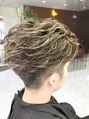 メンズハイライト ホワイトメッシュ パーマ風マッシュ 波打ち