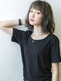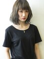 切りっぱなし風のブラントロブ。元々ハイトーンの髪に、暗めのブルーアッシュをいれて透明感のある仕上がりに!!無造作ウェーブをセミウェットな質感に仕上げて、かっこいい感じにしました。