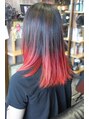 ブリーチをグラデーションに2回した後に、ロコルのルージュをベースに3色MIXして見たままの赤に仕上げました。