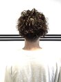 サイド襟足は刈り上げていてツーブロックのスタイルです。スパイラルパーマを柔らかくかけることにより、ころん としたカールと、マッシュのシルエットで丸みのある かっこよすぎないパーマにしました。柔らかい印象のパーマスタイルです。