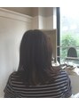 カット・・・ストレートな感じ、だけど伸ばし中。。。 肩について。。。ハネるけど。。。ハネる事を活かす 自然なミデイアム。。。