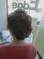 逆光でとてもわかりずらいですが…センターに大きな裏編込みを作り、両サイドにも編込みを作って、ネープでまとめました(見えづらいですが…)編込みのモコモコ感がかわいいスタイルです