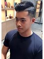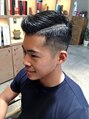 片側ツーブロックの刈り上げショートで外人風分け目にラインを入れて一味違うスタイルに。