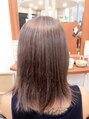 Wカラーでくすみ感を強調させたパープルシルバーアッシュです。ベースを一度ブリーチ剤で抜きその上からパープル色をベースに8トーンのシルバーアッシュ系の薬剤をのせれば完成。