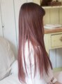 レイヤーを鎖骨あたりから入れてダークトーンでも軽い印象に♪ まとまりがよくなるようにカットしました♪ ピンク系のカラーで女の子らしく、優しい雰囲気に仕上げました! トリートメントで天使の艶リングの出来上がり☆