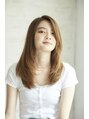 ふわっとした質感のストレート。毛先をかるく内に入れただけの簡単スタイリング。カラーのオススメはブラウン系。綺麗なフォルムにピッタリのスタイルです。