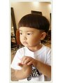 2歳の男の子のマッシュルームカットです!サイド~バックはツーブロックにカット、サラサラストレートのお子様によくお似合いですね!