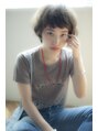 重さを残したショートボブスタイルです。前髪の長さは、似合わせで目にかかる長さでも◎ふんわりとした動きが出るように量感は軽く。スタイリングも簡単です☆カラーはミントベージュで透明感と柔らかさを。