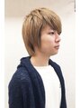 えりあしはすっきり短めのレイヤースタイルです。サイドをタイトにカットしてしまうとマッシュ感が無くなってしまうので、適度な長さを残すようにカットします。前髪は目元ギリギリの長さで目力アップ。