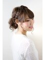 顔まわりの髪をバランスよく残してから後ろに向かって編み込みします。片方に寄せて前からもカールが見えるように調節しながらアップにします。前から見ても横から見ても可愛いアップスタイルです.