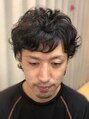 サイドはツーブロック、トップはふんわりパーマ☆襟足は外ハネに、強めな波打ちパーマです☆直毛さんですが、一気にオシャレな印象になりました!