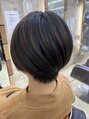 スッキリとしたレイヤーボブです。トップの長さを長めにしているので、襟足の部分が乾かすだけで、キュッとしまるようにカットしています。スタイリングに時間をかけなくても、まとまるようなスタイルとなっています。