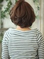マッシュベースのローレイヤーボブで、クセ毛っぽく大きめのロッドでパーマをかけて、カラーリングはアッシュベージュでやわらかく。バングを眉上にかっとして、かわいさアップ!!【巣鴨店】