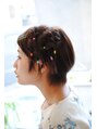 ショートヘアのアレンジです。カラフルなゴムとピンでPOPに仕上げてみました