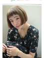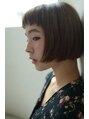 切りっぱなしの外ハネボブ。オン眉のバングと相性バッチリ!インナーカラーで入れたピンクベージュは肌をきれいに見せてくれます。