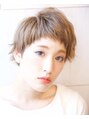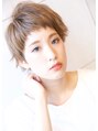 小顔に見える厚めバングの斜めバング。流し前髪の大人かわいい、毛先のみアンニュイカール。モダンショートとグレージュショートの混ざったスタイルです。無造作な毛先はワンカールで巻いてます。前下がりだけどマッシュなスタイルで黒髪でも似合います。