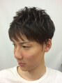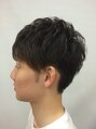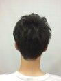 サイドはツーブロ、すそは軽く刈りました。束感が出るようにスライドカットをふんだんにいれてあります。
