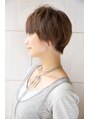 小顔に見える厚めバングの斜めバング。流し前髪の大人かわいい、毛先のみアンニュイカール。モダンショートとグレージュショートの混ざったスタイルです。無造作な毛先はワンカールで巻いてます。前下がりだけどマッシュなスタイルで黒髪でも似合います。