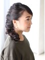 ちょっとしたお出かけに使える、編み込みアレンジです!アシンメトリーに斜めに編み込み、更に毛先をねじって立体感を出しました。