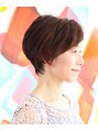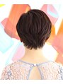 丸くレイヤーをつけているのでショートでもやわらかな仕上がりです。短い前髪もポイント。カラーはマニキュアですが、ハイライトを入れることで明るさと動きも出ます。