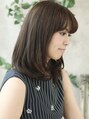 重めの前髪と、ストレートタッチのラフさも残しつつも可先のカールで可愛さをプラス。重めのレイヤースタイルをベースに、顔周りにはレイヤーを入れて適度な軽さもプラス。カラーはダークカラーでツヤ感アップ!!38ミリコテでゆる巻きに。