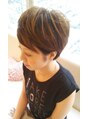 ブラウンベースにハイライトと、ローライトをMIX。トップのボリュームがポイント。ベリーショートにメリハリが出ます。耳にかけてすっきり、ガーリーさをプラス♪
