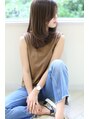 ナチュラルにワンカールで決まる顔周りレイヤースタイル。32ミリのコテでカットラインに合わせて軽く巻くだけの簡単スタイリングが◎ カラーは透け感の出るナチュラルグレージュに。大人かわいいスタイルはお任せください
