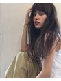 フルバングのロングスタイル。カラーはオリーブアッシュで透明感をだしました。ゆるいウェーブが力のぬけたおしゃれな印象に。