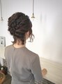 ミディアムボブで短い襟足は、あえて逃がして可愛く外ハネ波ウェーブに。クルリンパを4回で作るアレンジで短くても可愛くおしゃれに出来ますよ。結婚式、二次会、パーティーなどでも幅広く使えるアレンジです。