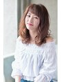 はやりの短めの前髪に、軽さを強調したまきスタイルに♪動きが全体に出て、柔らかさを表現しやすいスタイルになります。色は柔らかなマッドベージュカラーで自然な柔らかみに★