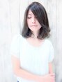 アッシュ系のミディアムヘアです。前髪は頬骨あたりで流しています。