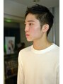 ベーシックに忠実に仕上げたカジュアルなソフモヒ。ハードになりやすいソフモヒをナチュラルに見せるのはランダムに行き交う毛先をモヒカン状に立ち上げたスタイルだから。さりげなくサイドパートにして前髪を横に流しながらアップしトレンド感をマーク。