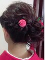 成人式のヘアセットです。落ち着いた雰囲気の中に編み込みで可愛らしさも忘れずに。