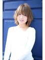 淡いネイビーグレーのカラー。毛先に軽く動きを付けるパーマをON♪