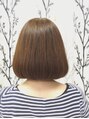 全体的に重めにカットしてバックは内に入りやすくする為、中の方が一番短く表面の方が長くなっていてサイド跳ねたりしない様に角を削っているので丸いシルエットになります!!そして表面にスキを入れていないためよりツヤが出ています!