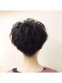 ネープとサイドを刈り上げたグラボブショートにナチュラルなカールを効かせた女の子ショートスタイル。マニッシュになりすぎず遊び心も持ち合わせたスタイル