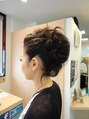 アップスタイル for結婚式前髪ポンパからの斜めモヒカンスタイルです!!ちょっとかわいくクールにきめたい方におすすめ!!