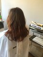 カット。。。ロングレイヤーでカットしました。。。カラー。。。中間から毛先は一度ブリーチしました。。。 シャンプー後 根元から中間はブルーアッシュ9レベル 中間から毛先はピンクベージュ8レベルをかぶせました。