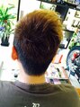 サイド、バックをバリカンで刈り込んだハードな立ち上げスタイル!アシンメトリーなデザインのため、左右で見せる表情が違っておしゃれです!