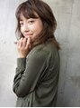 まるでくせ毛のような柔らかい質感のナチュラルなミディアムスタイルです。カーキグレーのカラーとの相性もバッチリです。毛先がハネてもかわいいおしゃれなデザインです!