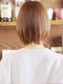 今期のジェンダーレススタイルによく合うナチュラルショートボブ。 長めの前髪が可愛らしさを少し中和して大人可愛く仕上がりました。 少しくすみ系のカラーリングを少し入れてツヤを損なわずに透明感を出し欲張りスタイルの出来上がりです。【大島】