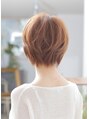 お手入れ楽なショートスタイルです。小顔に見えるひし形フォルムに明るめのナチュラルブラウンで大人可愛いに。