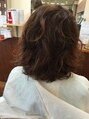伸ばしていきたいが肩にあたってハネるという悩みを解消する為に全体的にゆるふわパーマをあてました。