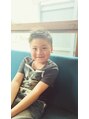 子供カット。かりあげスタイルです。ややアシンメトリーにすることでお洒落なヘアスタイルに。大人の男性にもおすすめ。