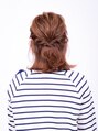 後頭部中央でひとつに結んで、細く毛束をつまみ出します。サイドから髪をひと束ねじりながら持ってきて、ざっくりほぐしたらピンで留めます。サイドから見たシルエットも可愛い、カジュアルアレンジ。【EARTH西国分寺】