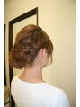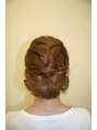 みつ編みと編みこみを組み合わせたアップスタイル。