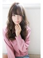 ■【ブックマーク】してカウンセリング等でご利用ください■アッシュベージュカラーの透明感とドーリーなカールが女子力の高いセミロングスタイルです!!透け感のある軽く流れる前髪が優しさをプラスしてくれます!