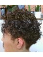 くせ毛で毛の量が多いヘアを、カットで調節したスタイルです。