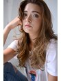 しっとりヌーディな色味のブラウンに細かいハイライトをランダムに。前髪はリバースで巻いて根元を立ち上がらせて、全体を大きめのカールでスタイリング♪